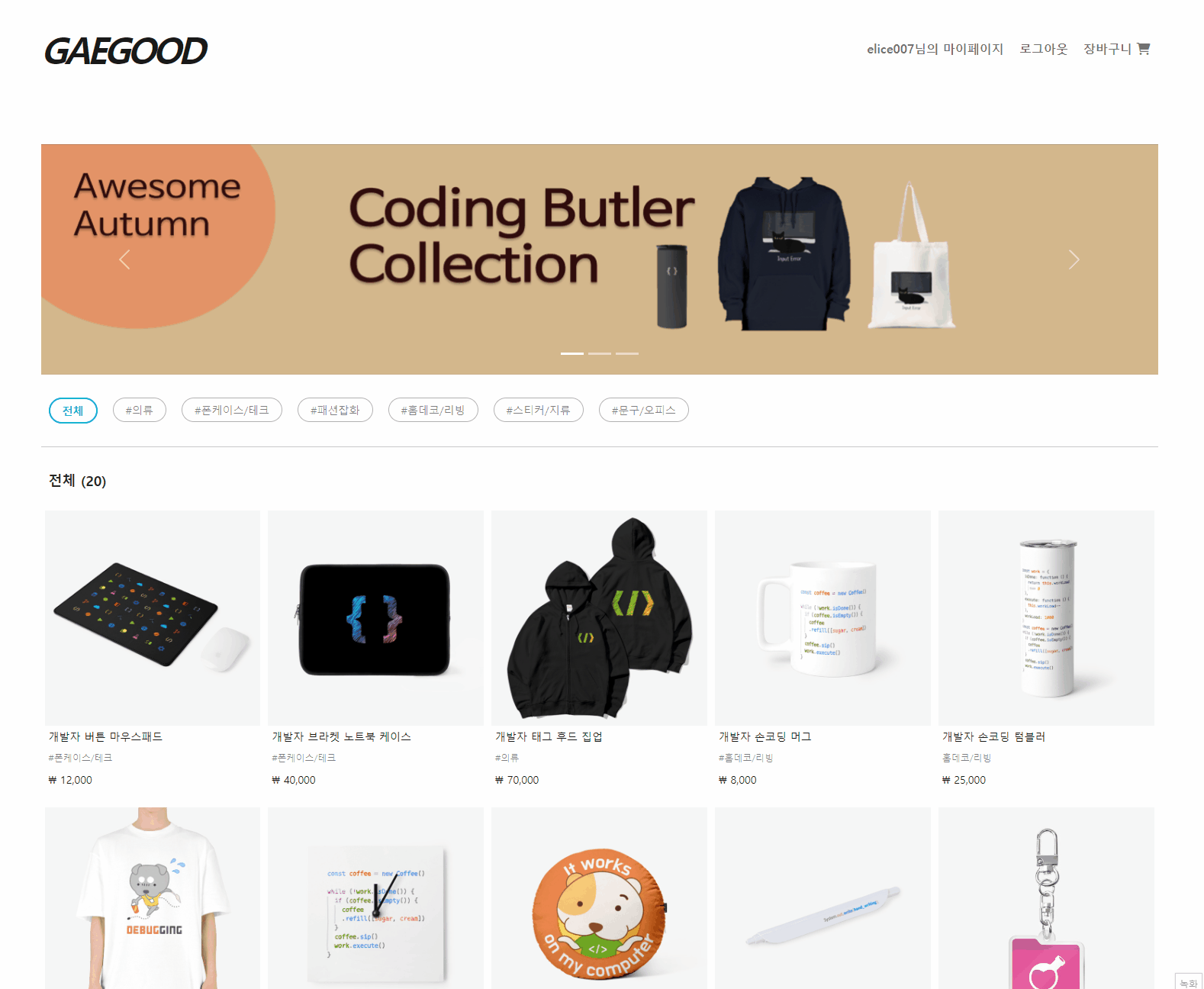 - 목적 : 개발자 굿즈가 갖고싶은 개발자들에게 개발자 굿즈를 판매하는 사이트