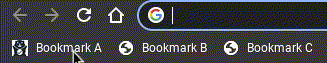 First, try running ctrl+shift+B. If that doesn't work, go to chrome://settings and turn on the "home button" feature, then set it to chrome://hang. A home icon should show up to the right of your refresh icon in the top left. Use that instead of bookmark C.