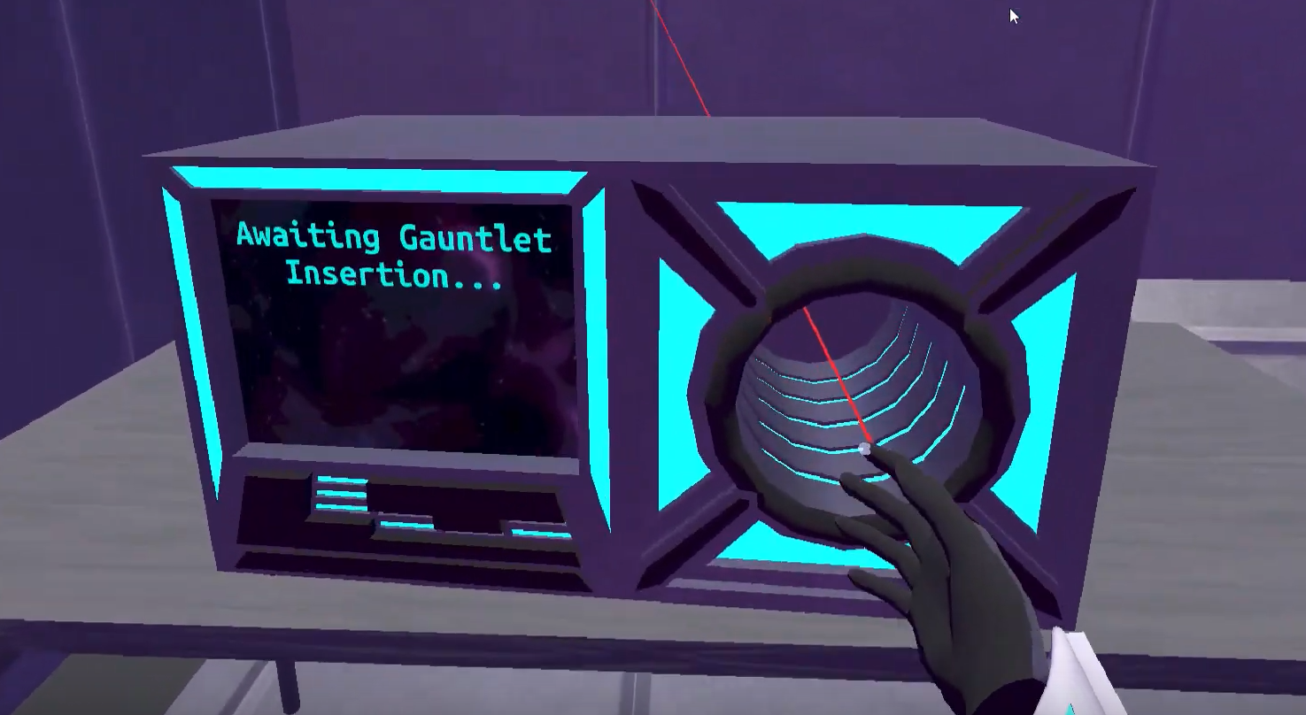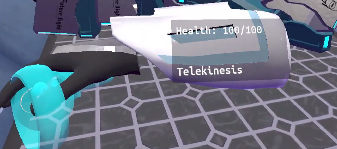 Telekinesis is one of the powers that will be present in the gauntlet, It will have the ability to pick up objects from a distance. The finalised version of Telekinesis will take the weight of the object into consideration and apply forces to the object, meaning the player can grab and throw the object around the room, magneto style. For the Games Fleadh edition, this physics-based approach will be replaced with a 1:1 position update.