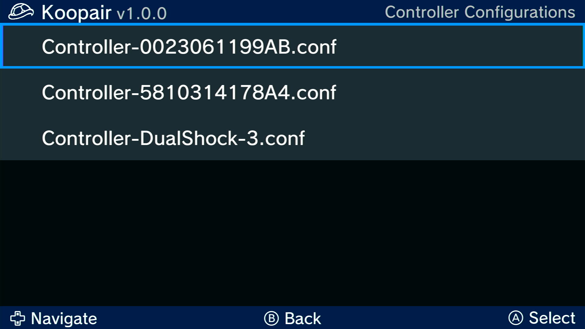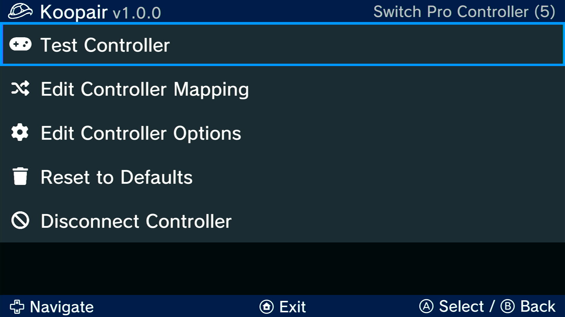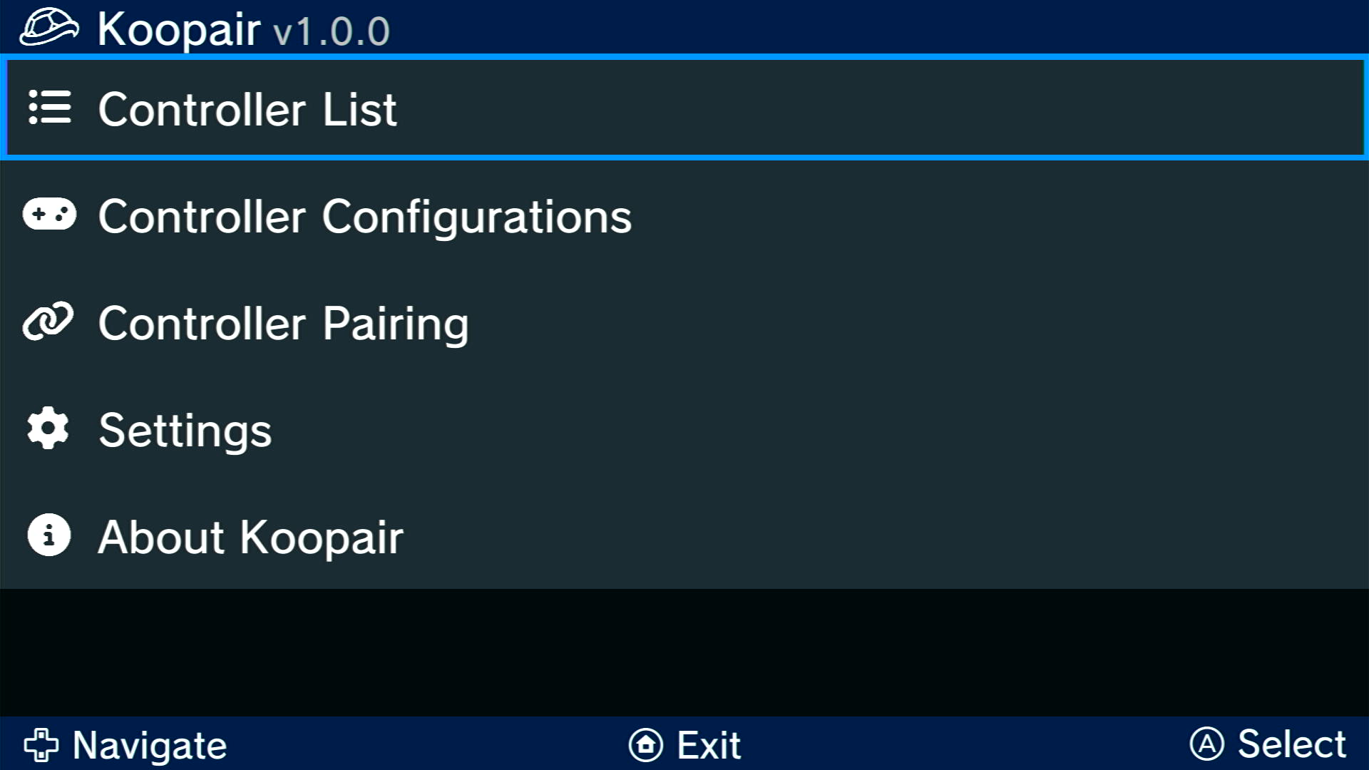 - Open Koopair from the Wii U menu or Homebrew Launcher. Now open the "Controller Pairing" option on the menu.