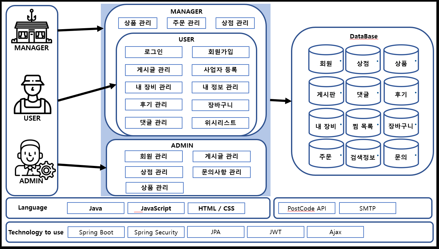 사용자들 간의 필요한 정보를 얻거나 교환하고, 입점 상점에서 낚시 용품을 구입할 수 있는 플랫폼 입니다.