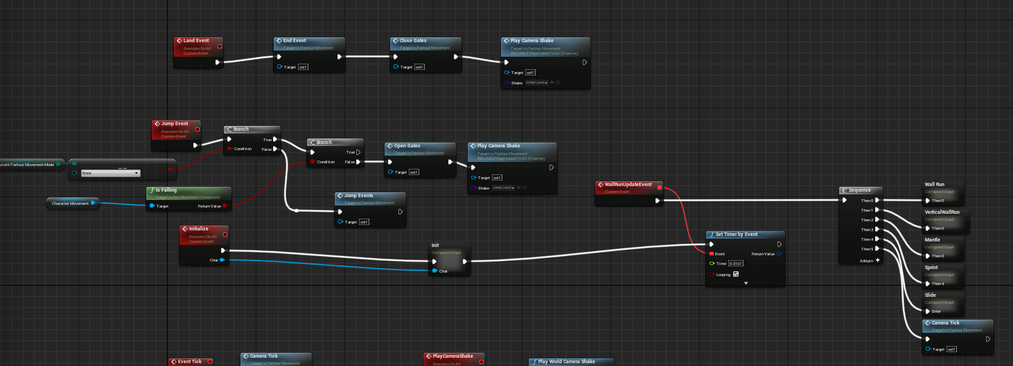 The players had a parkour component attached to them and could do their movements with this allowing them to Wall Climb, Slide, Sprint, and event Mantle. This was a little harder to get working as I had to replicate it to both characters since the component needs specific things from the character movement allowing them to execute the parkour.