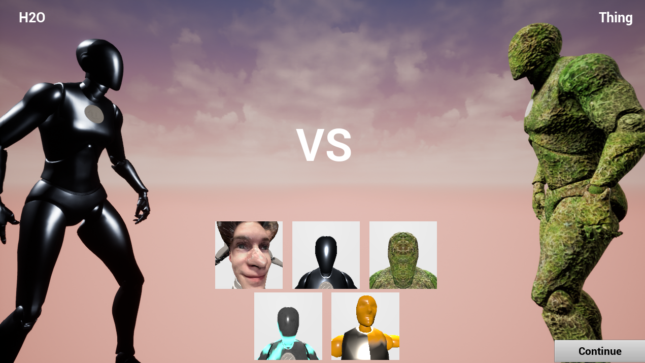In the image above you can see the screen where players will choose the fighters they want to play. The characters when selected have animation that they play and currently they are just default Unreal Engine animations but can easily be replaced. The images of the characters themselves are the target of a renderer so its easier to make them look better and its easier to replace the images as well since you just have to move the camera around until it captures what you want of the character.
