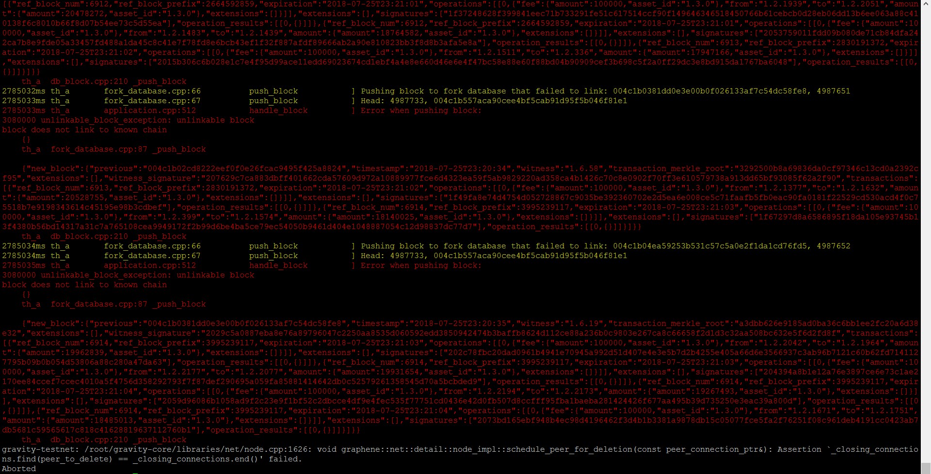 gravity-testnet: /root/gravity-core/libraries/net/node.cpp:1626: void graphene::net::detail::node_impl::schedule_peer_for_deletion(const peer_connection_ptr&): Assertion `_closing_connections.find(peer_to_delete) == _closing_connections.end()' failed.