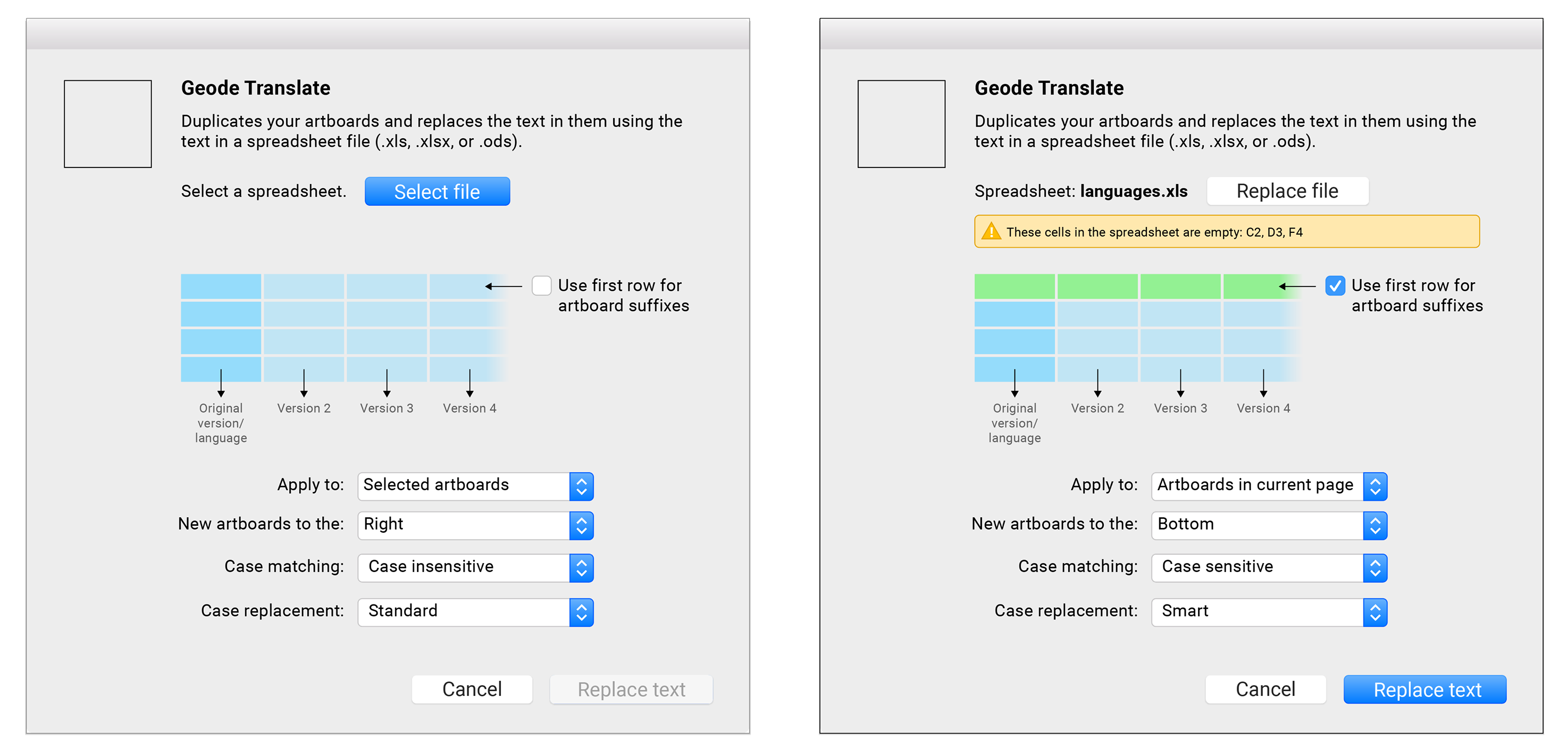 - Check the suffix option by default, update its label to mention "languages" and use the original suffix for the original artboards too.