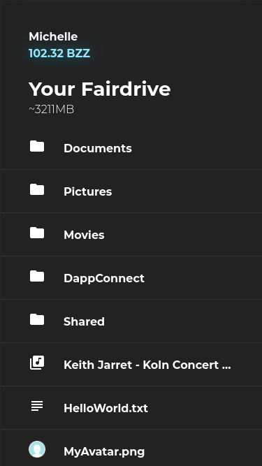 Fairdrive is a dApp that enables decentralized storage on Swarm. It consists of a typical "Drive" interface with files and folders, and a BZZ wallet to manage token balances and keypairs. Under the hood, FairOS is running a filesystem on top of Ethereum Swarm.