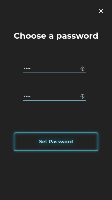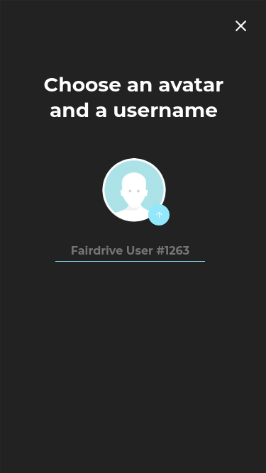 The username and avatar is filled automatically from Fairdrive, the only thing left for the user is to choose a password to encrypt the privatekey in localstorage (if the dapp developer opts to do so).
