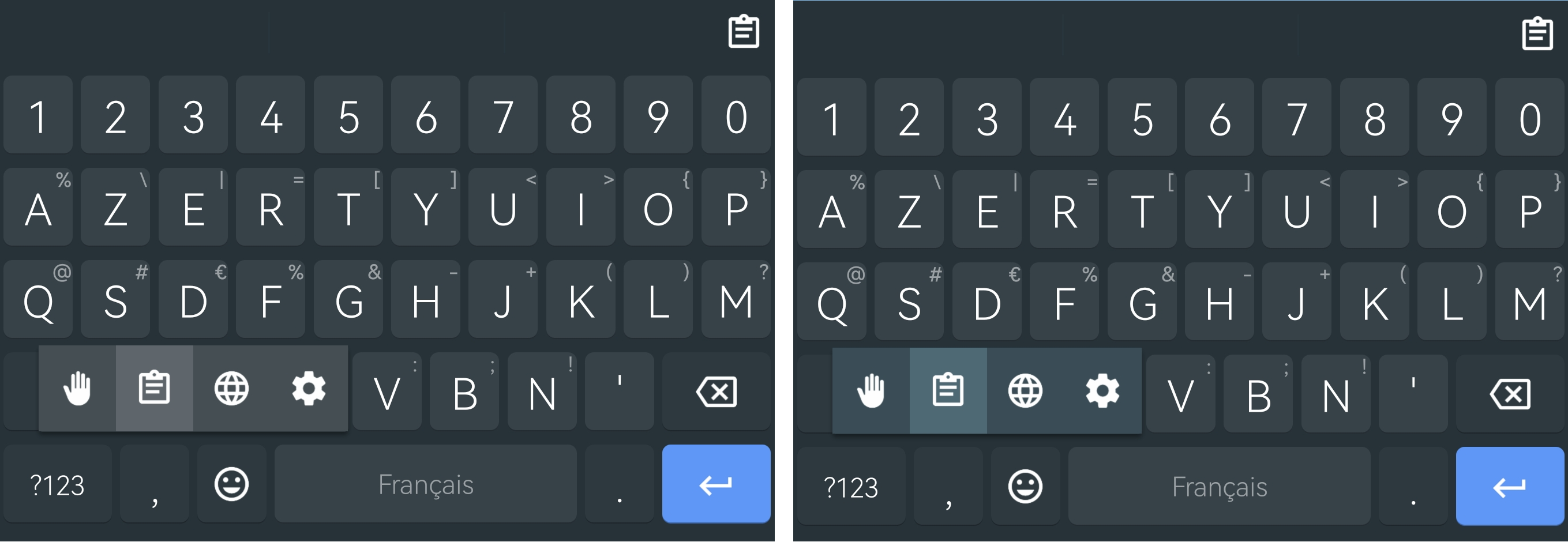 By using the HSL properties, the 2 functions below no longer use white or black to adjust the hue but use the color associated with the keyboard background and a factor to either lighten or darken the color. In my opinion, this is another good step forward on the improvement of themes. Screenshots below: left = without HSL // right = with HSL FYI: for Indigo Theme and User Theme don't take into account colors of functional key because I modified the code to be able to modify their colors but the principle is the same for the other key popups. @Helium314 : as usual, if you want I'll create a branch so you can test it out and a new PR if you agree with this proposal. |