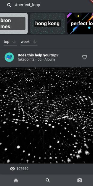 Then is displayed the trending tags. By pressing one of them, Epicture will automatically search for it.