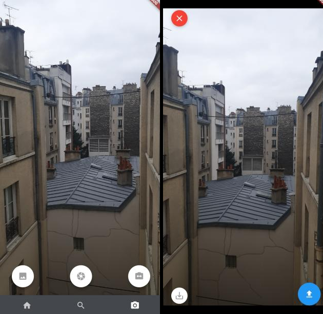 Epicture's camera was made using camera, an official Flutter plugin which gives us acess to the smartphone cameras. We chose not to use the official plugin which calls for the default smartphone camera because this one allow us to display the camera as much as we want, giving a snapchat like felling.
