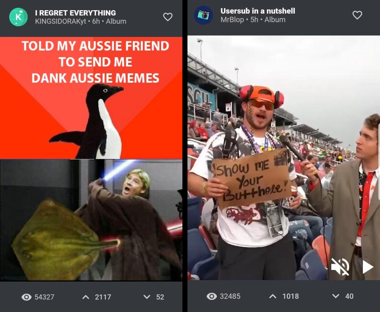 Finally, at the bottom, you can see how many views / upvotes / downvotes the content has. You can press up or down in order to upvote / downvote the content.