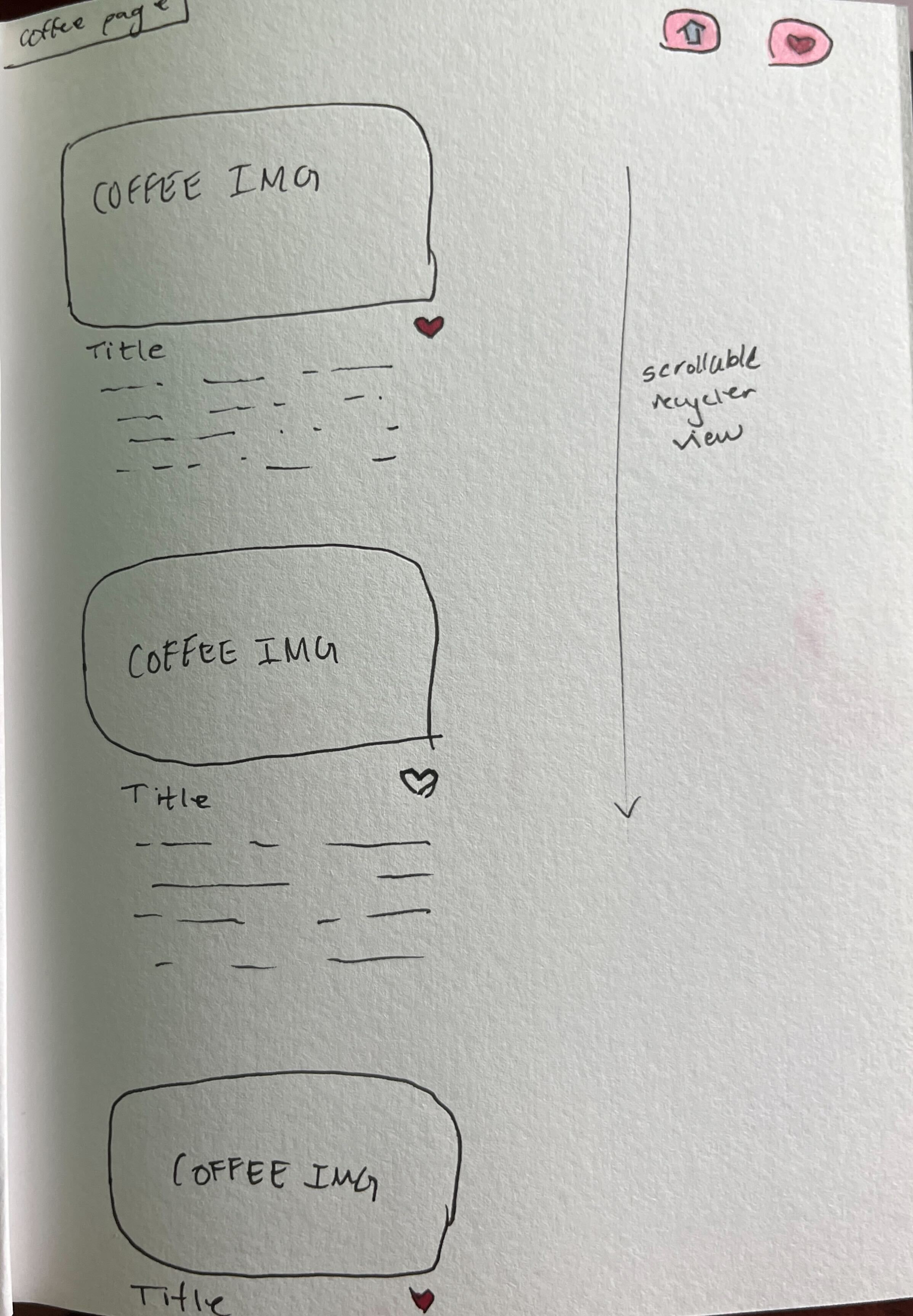 Our project will create an app that displays a scrollable list of coffee images with their names and descriptions from the Coffee API, with the searchable and favorite function.