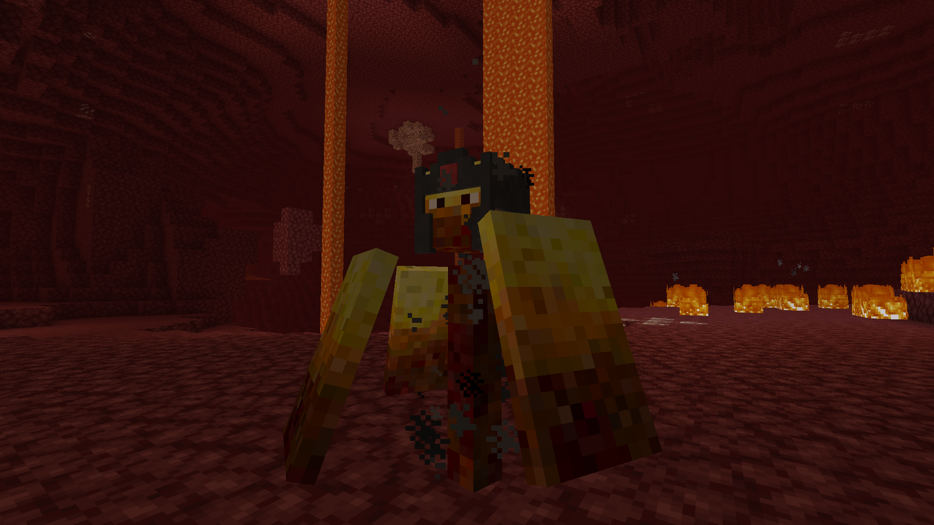 The Hovering Inferno is a blaze-like mob but with more health and armor. It has a very low chance to spawn in the Nether accompanied by a group of Blazes whose size is dependent on difficulty, 2-3 on Easy, 3-4 on Normal, and 4-5 on Hard. It also has a 10% chance to spawn out of a Blaze Spawner.