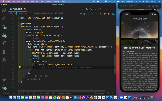 The attendees worked with NASA - National Aeronautics and Space Administration's Open APIs to make a flutter app that shows astronomical data in their flutter application.