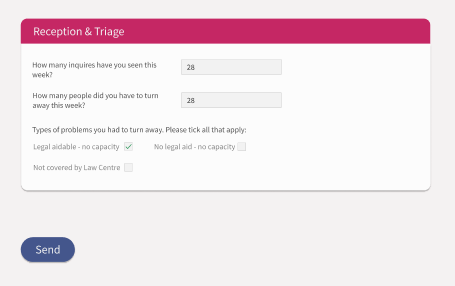 LCN has trouble collecting data from each LC as they all provide it in slightly different forms and with slightly different definitions. LCN has also found it has been lacking in providing real stories of their effect. The challenge is to provide a platform which will allow Law Centres to quickly, and cohesively share data with LCN