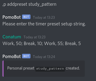 Work, 50; Break, 10; Work, 55; Break, 5is what we call a setup string.About presets