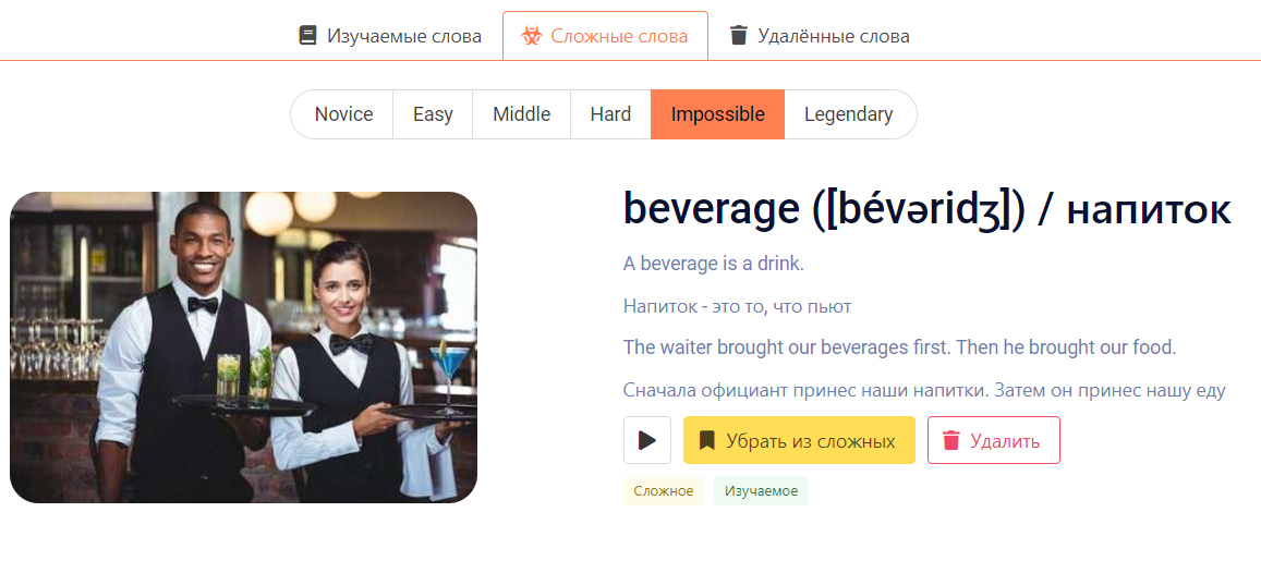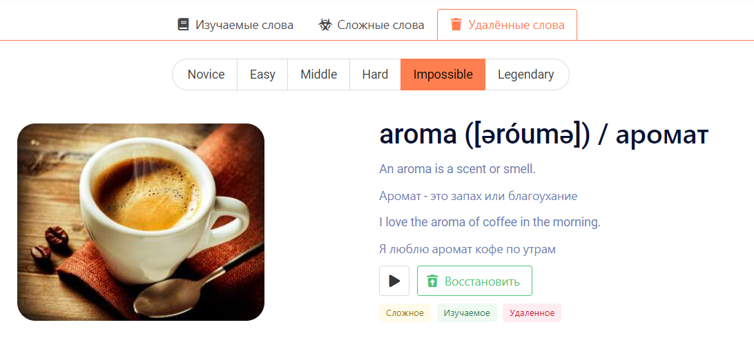 • раздел "Удалённые слова" +10