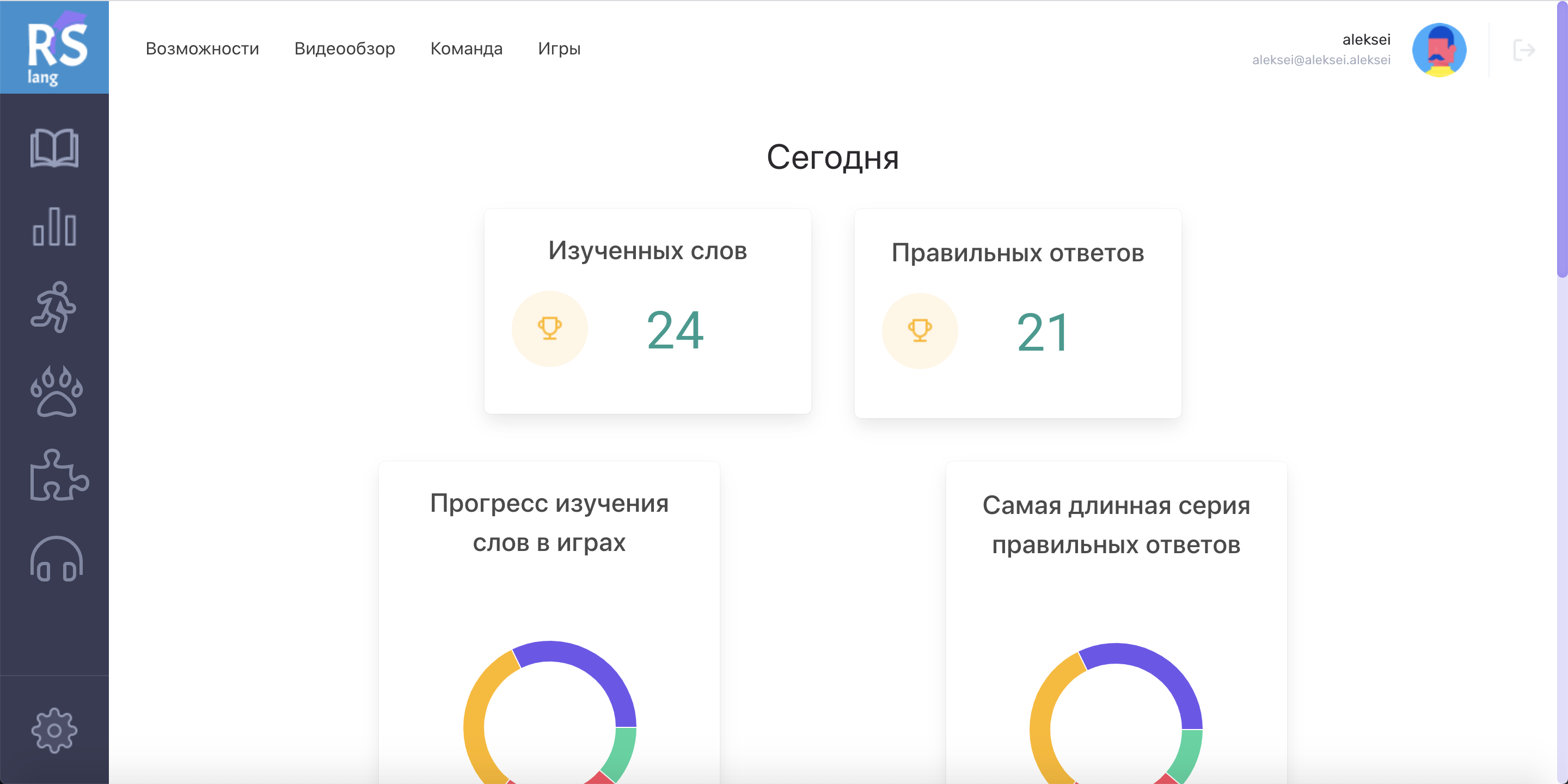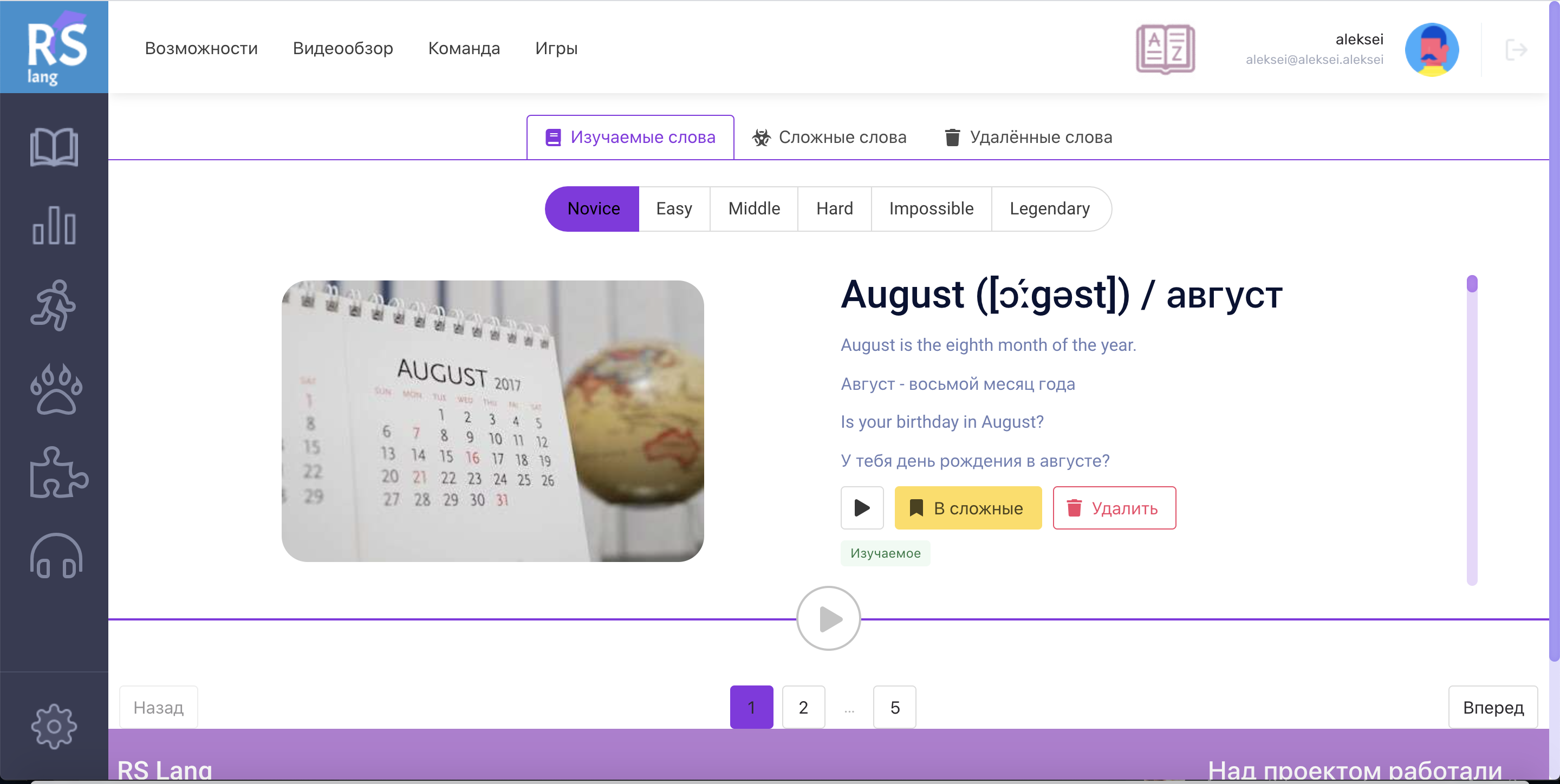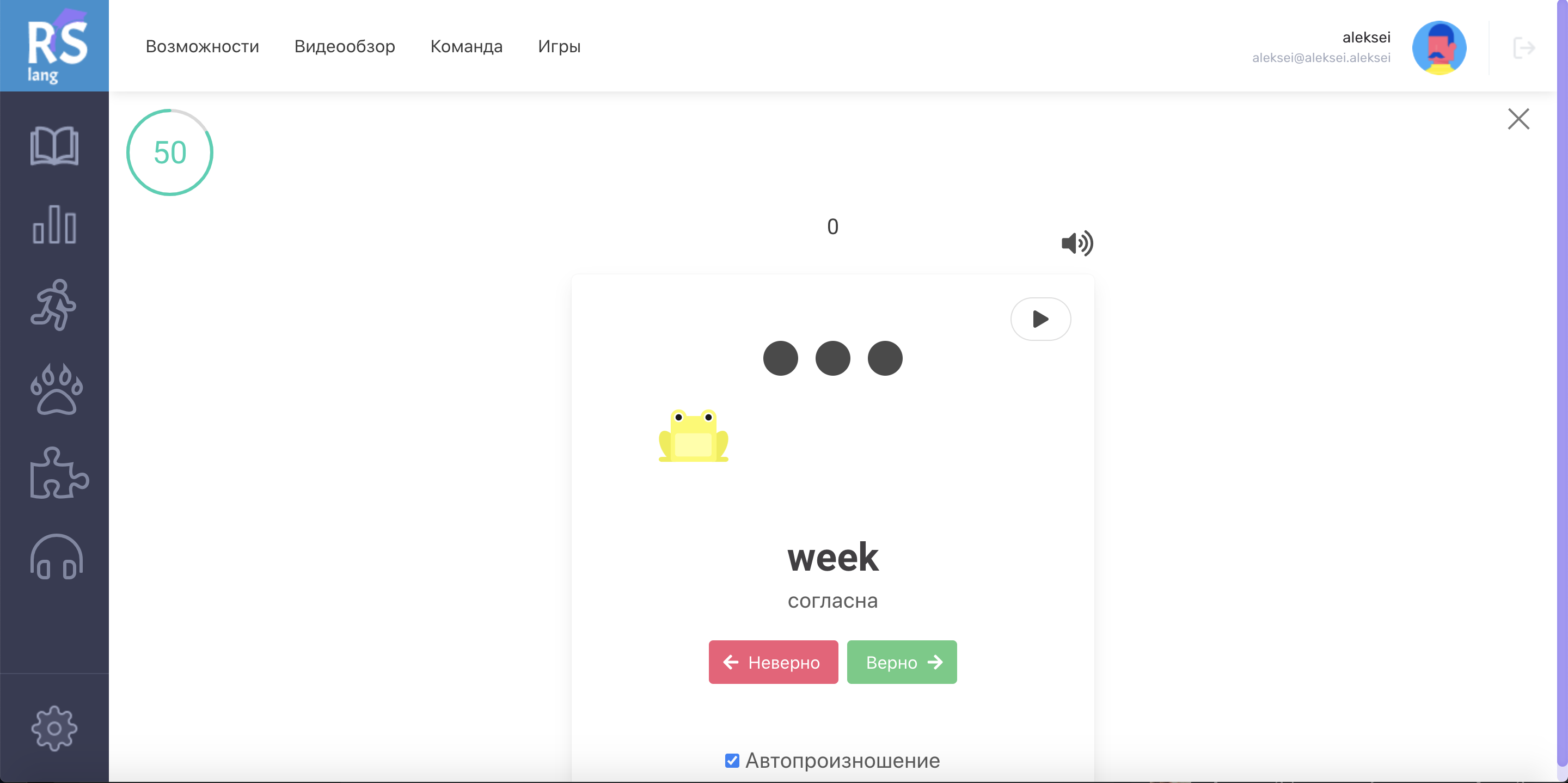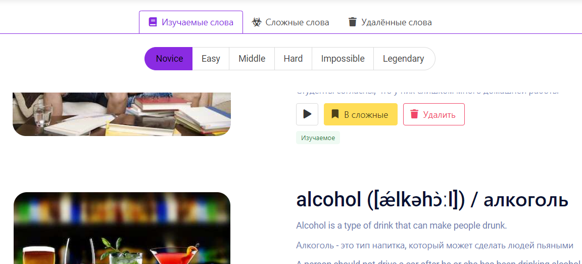 • раздел "Изучаемые слова" +20