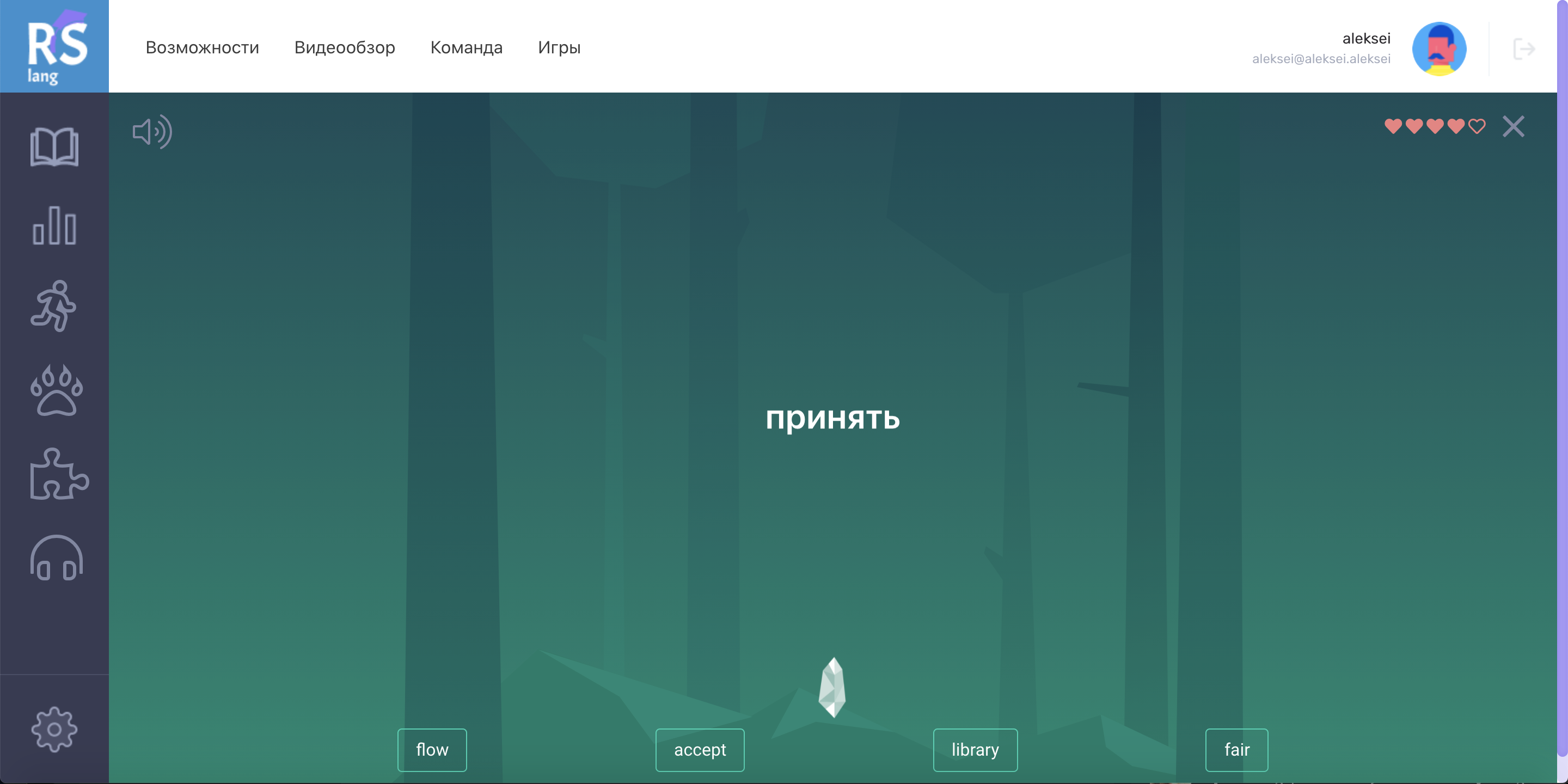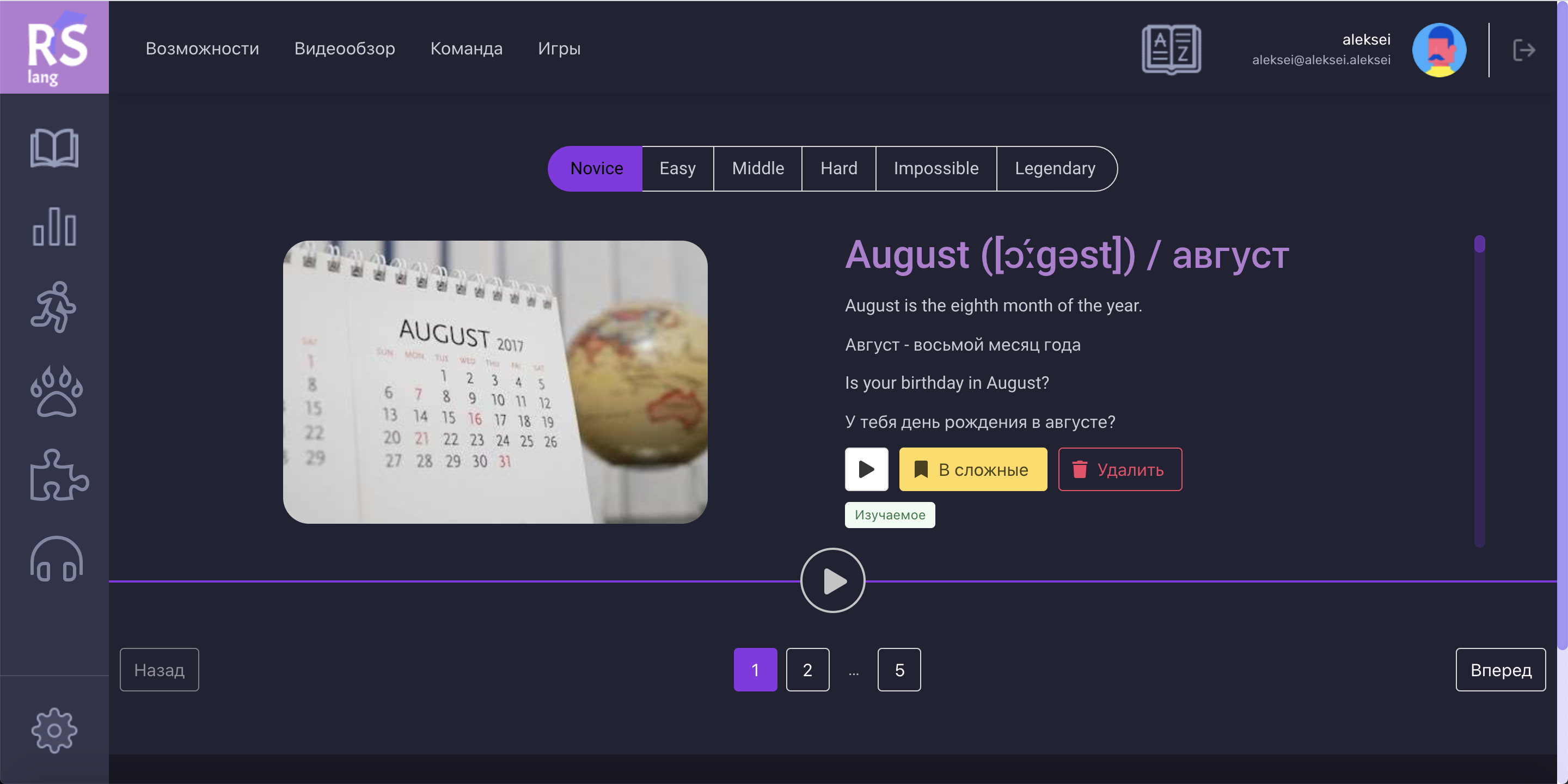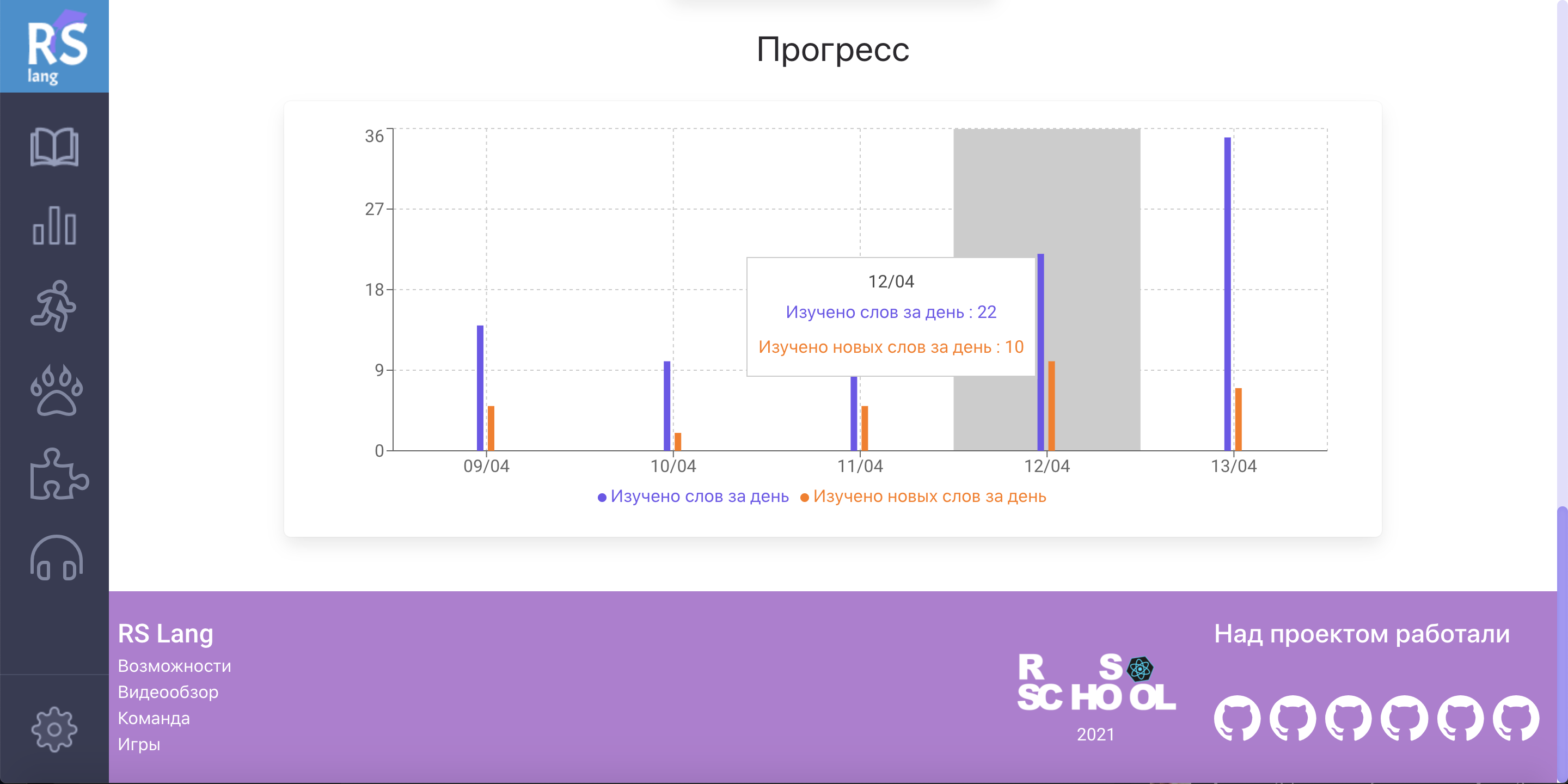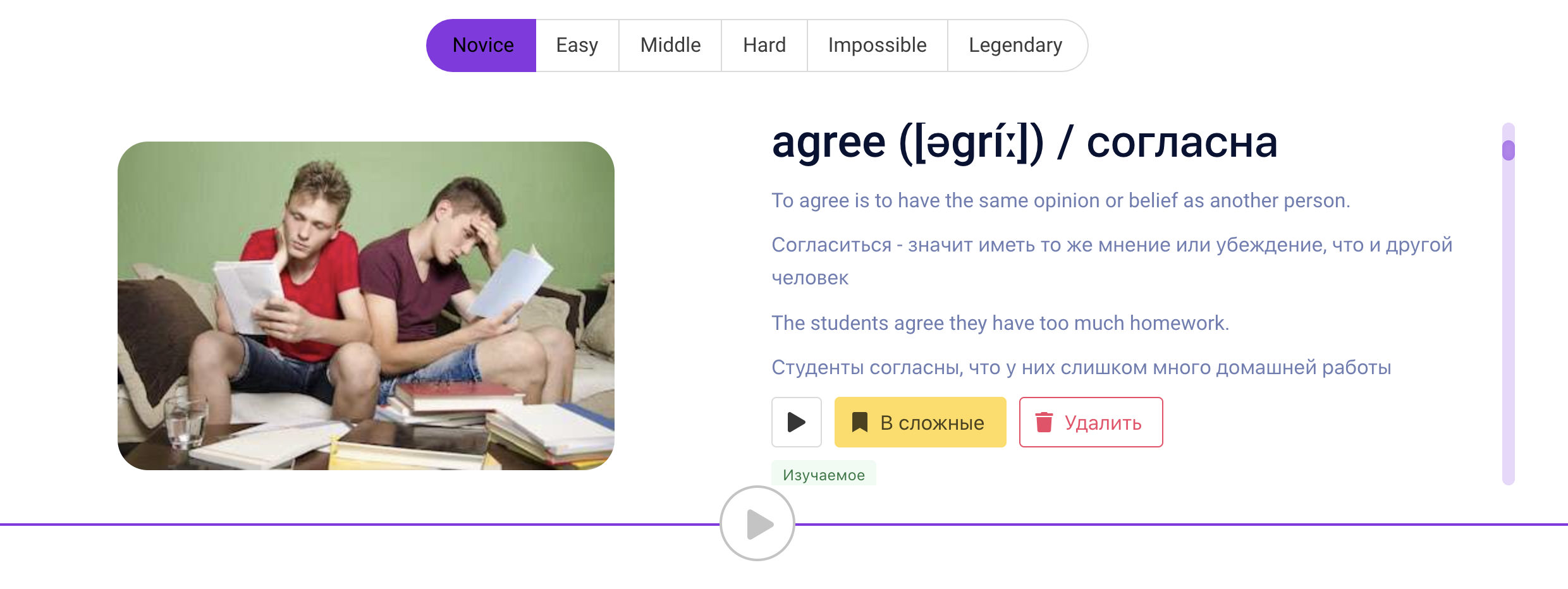 • раздел "Изучаемые слова" +20