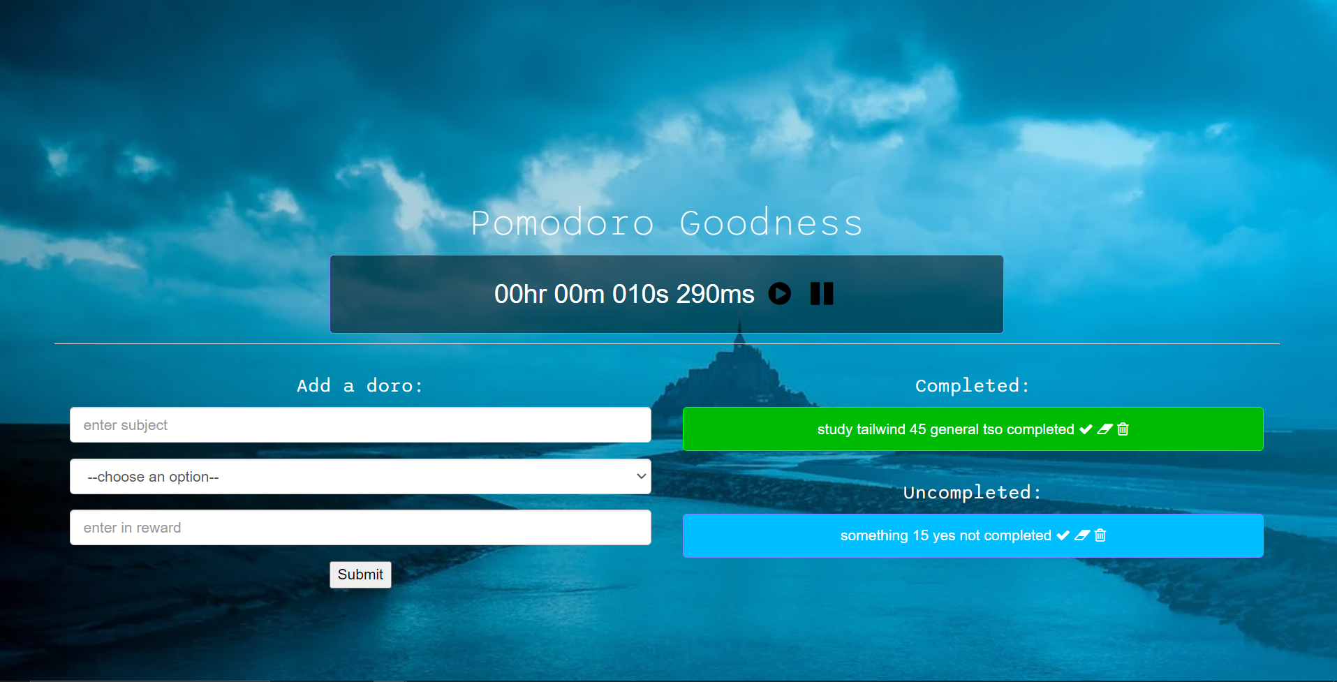 The pomodoro app allows you to add a pomodoro task. There is a timer to track your time on your tasks in the same place. Once, you have complete a task you can click the check mark and it was go to the completed section. If you no longer want to complete the task, you can delete it with the trash day.