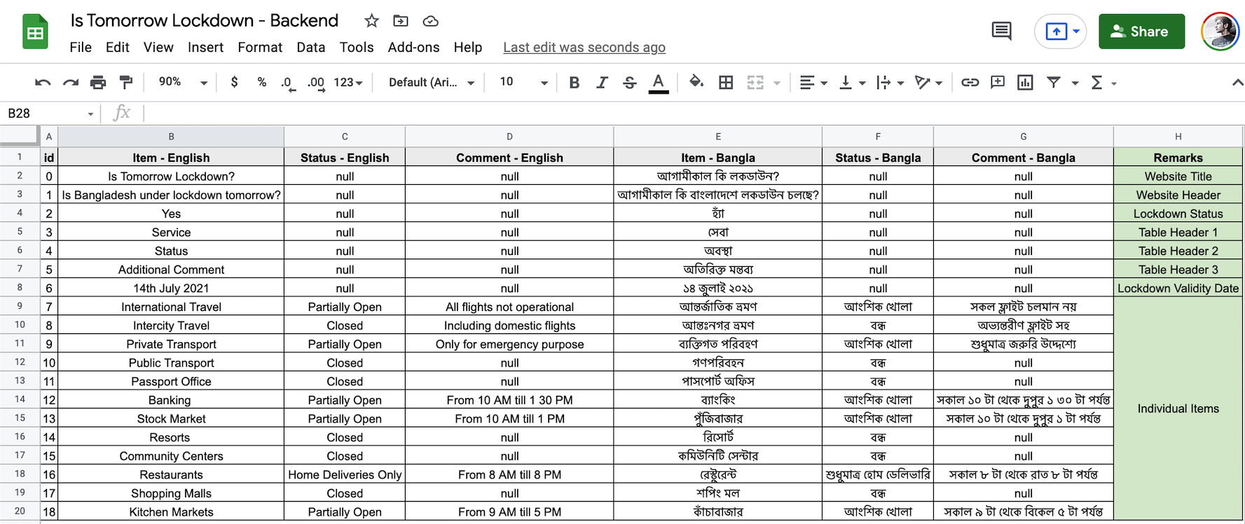 A NextJS PWA project that fetches information from a Google Sheet and then dynamically updates the latest lockdown restrictions in Bangladesh for easy view of the general public.