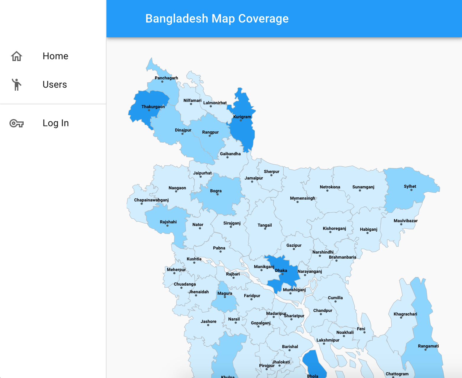 A full stack JS project based on the MERN stack of Bangladesh Map that can be used easily within organization and teams to keep track of employees/users and how much of the country they've travelled.