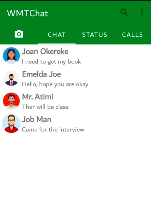 This application was created as part of the women techsters fellowship program, Mobile App. Dev. Track. It is basically a clone of Whatsapp. Though most features are just based on simulation.