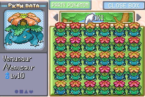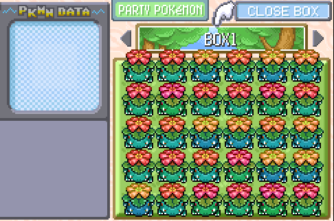 - Rama de iconos: Los iconos de los Pokémon han sido sustituidos por sus sprites para el OW. Esto tiene muchas ventajas: Se reduce el número de paletas que hay que editar de un Pokémon, los iconos adoptan la paleta shiny automáticamente, se tiene que editar menos gráficos de cualquier Pokémon, los Pokémon con diferentes formas se verán también tanto en el OW como en las interfaces... Además, contamos con versiones de 64x64 para followers grandes para el OW. Estos son configurables con OW_LARGE_OW_SUPPORT, aunque en cualquier caso, todos los iconos de los Pokémon serán 32x32. Como contrapartida, esta rama ocupa más ROM, así que es algo que tienes que tener en cuenta.