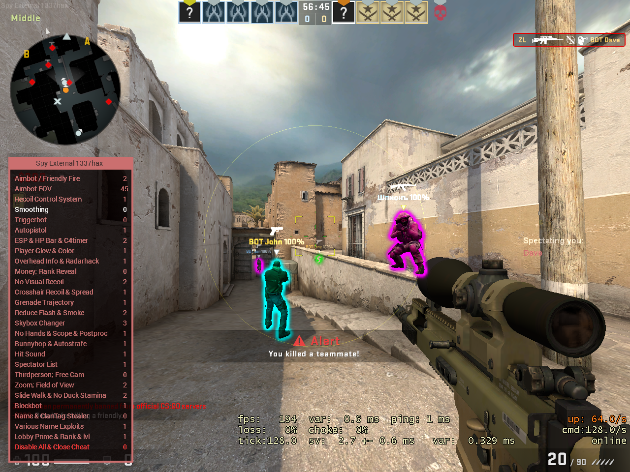 SpyExternal1337hax CSGO Cheat https://www.unknowncheats.me/forum/cs-go-releases/396989-spy-external-1337hax.html