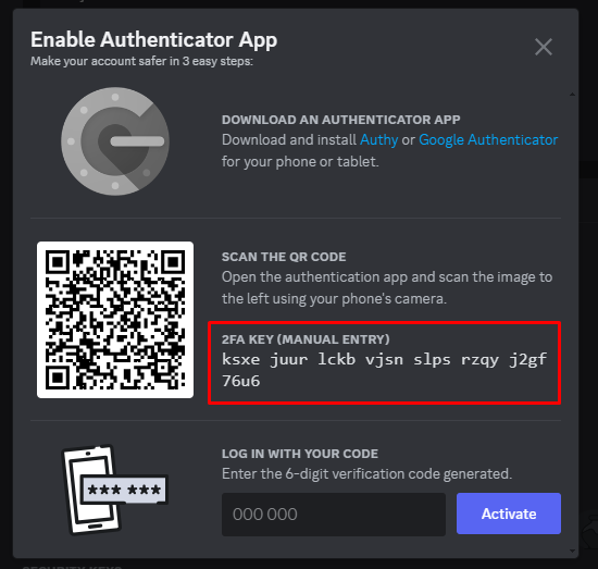 The 2FA key is the key you get from Discord when you enable 2FA in the user account.