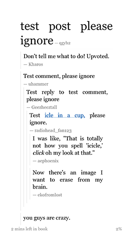 Now you can read your favourite subreddits from the comfort of your e-reader. Here is a preview of the output it produces.