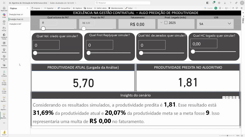 Este algoritmo foi desenvolvido para otimizar a gestão de pessoas e performance operacional. Através de simulações com múltiplas variáveis contínuas, ele orienta a liderança sobre o atingimento de SLAs e prediz riscos de multas contratuais decorrentes de perda de performance.