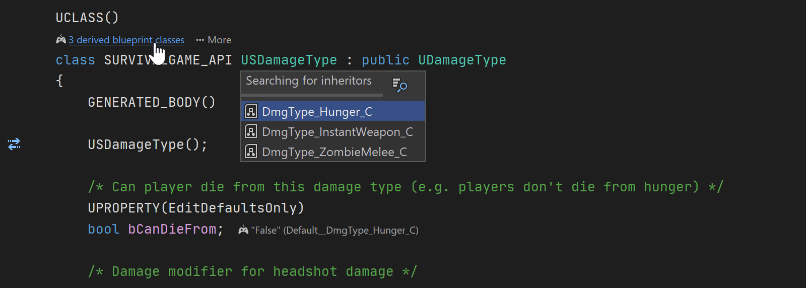 - There may be derived blueprint classes, which you can see by invoking Find Usages on a C++ class or when you're browsing your C++ code in the editor.