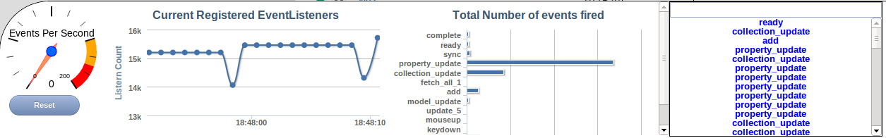 Closure Tracker is a google chrome plugin which provides real-time graphs and information about Javascript events that are being fired. It is meant for use with the Google Closure Javascript library.