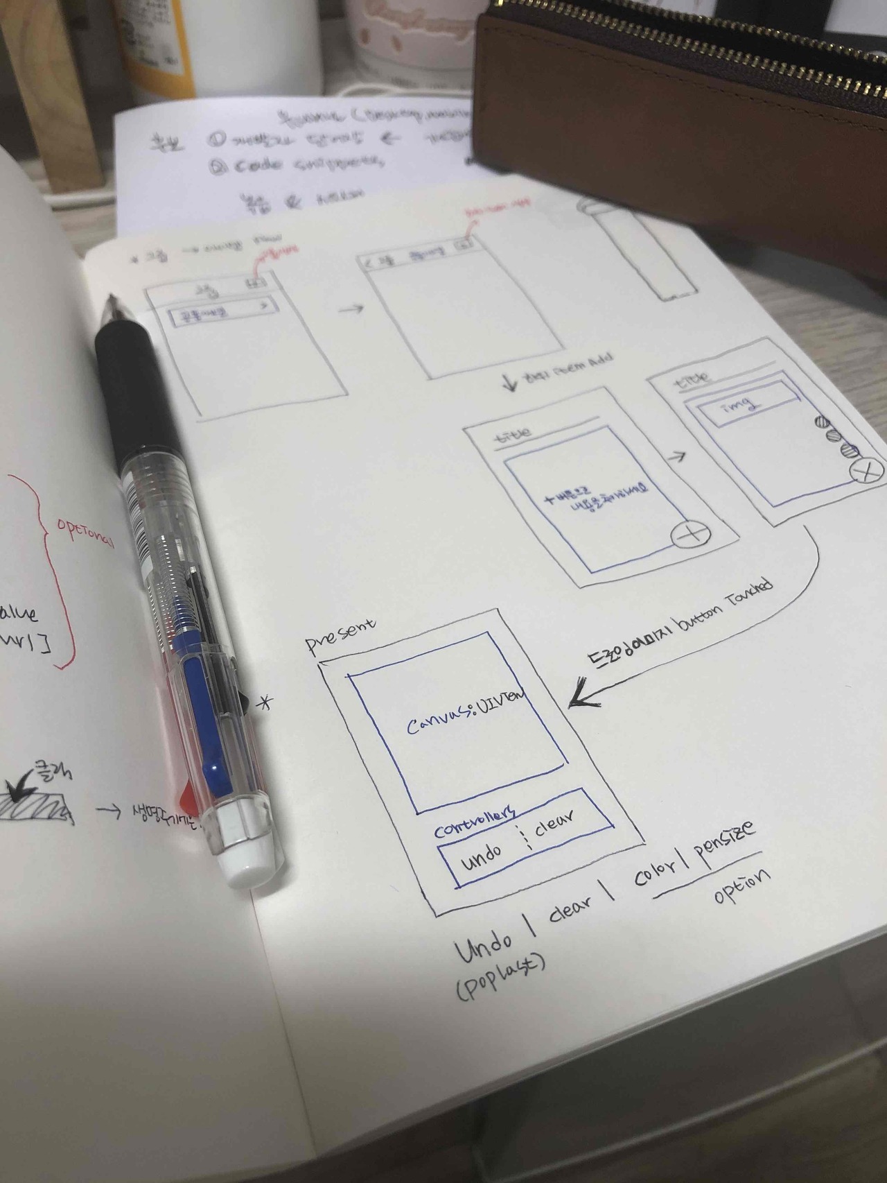 - 노트에 필요한 기능을 나열해 가며, 화면에서는 어떻게 보여줘야 할지 구상