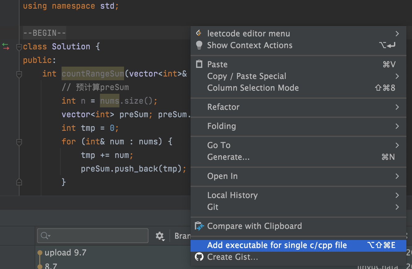 手动新建/leetcode插件下载的cpp题目文件中,右键Add即可调试