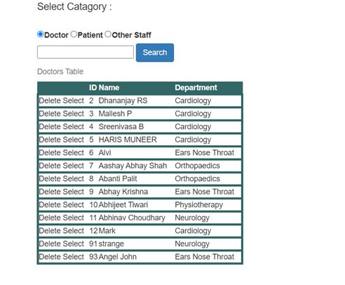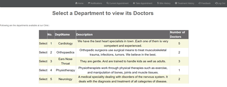 Doctors Available:This section shows Different departments available