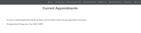 Current appointment section:This section shows the details of the appointment