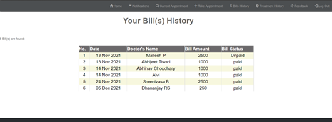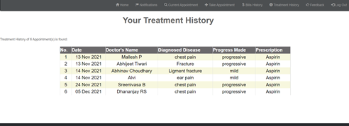 Doctor view: History of treated patients