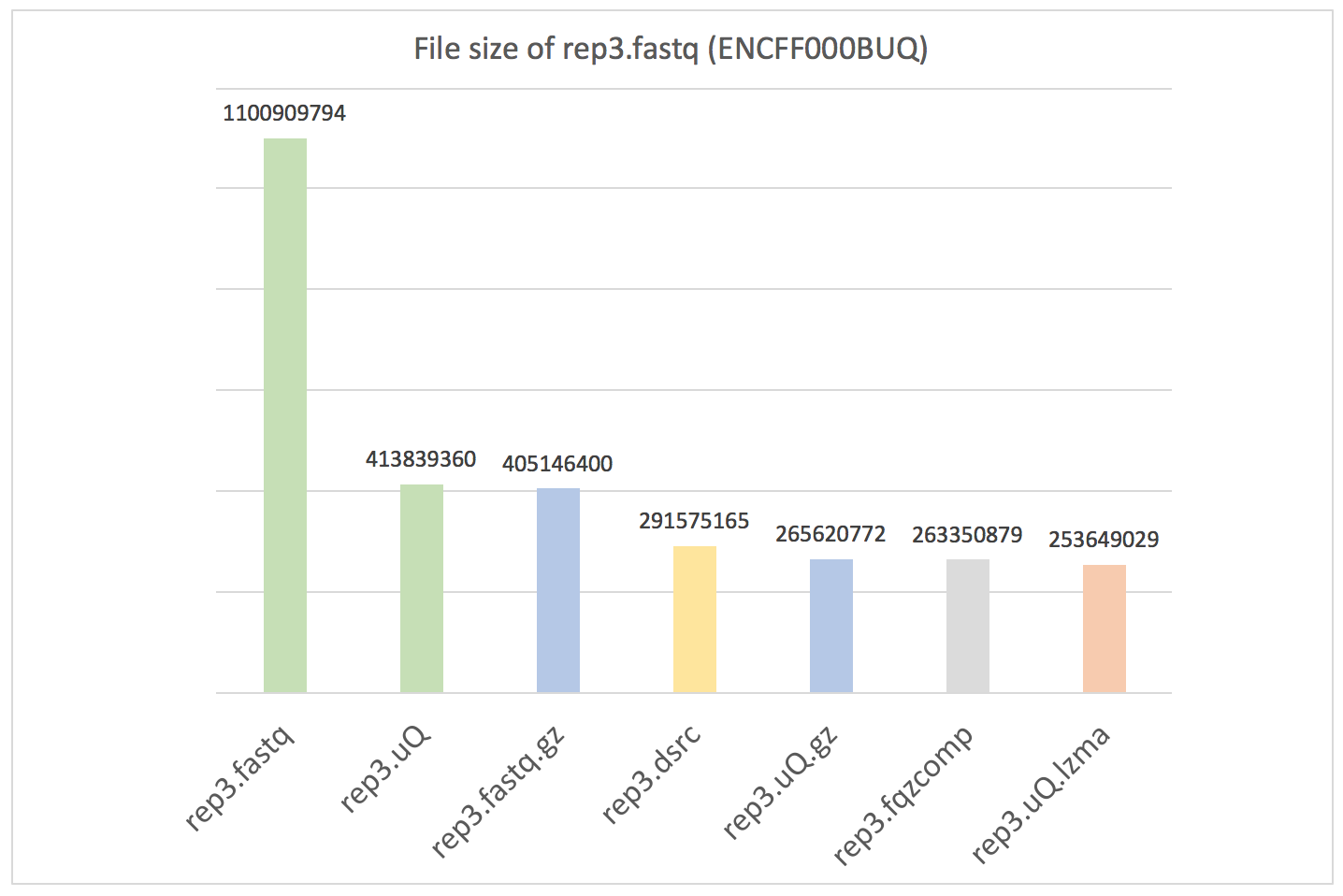 Which outputs much the same as above (but more data for the metrics) and a file "rep3.fastq.uQ" To really get the smallest files however, you have to use a slower compressor, and try with/without the --pad option, and with/without the --notricks option, to cover all the bases. As --pad and --notricks change the actual encoding and not just patterning/sorting, and encoding is currently really rather slow compared to what it could be in C, these options are not checked by --test.