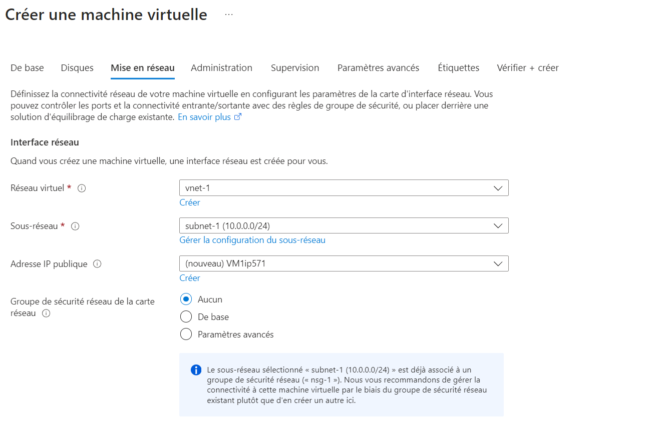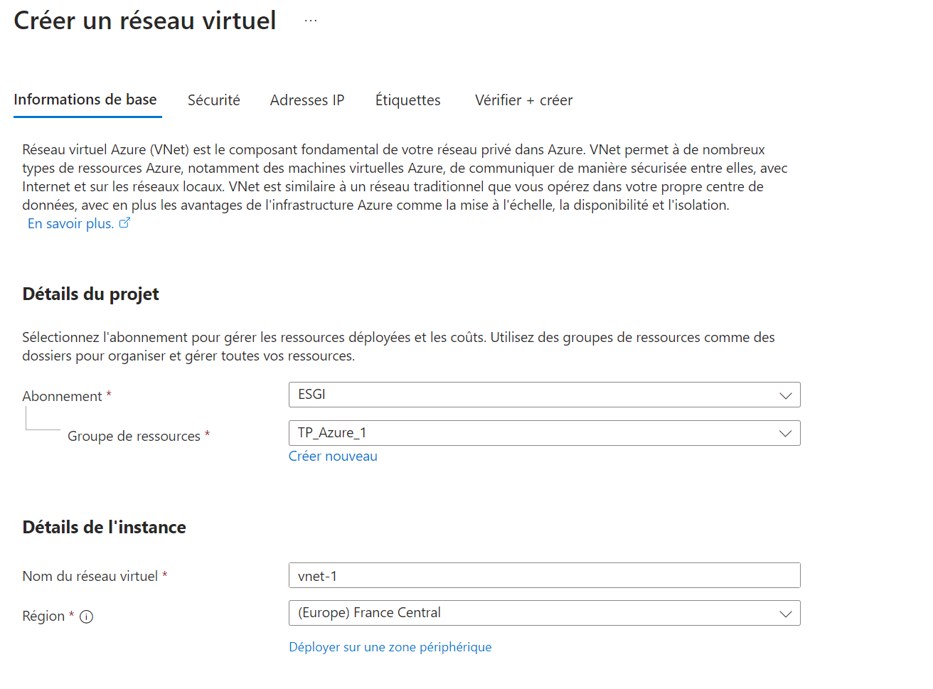 - Sélectionner votre réseau virtuel (nom de votre ressource)