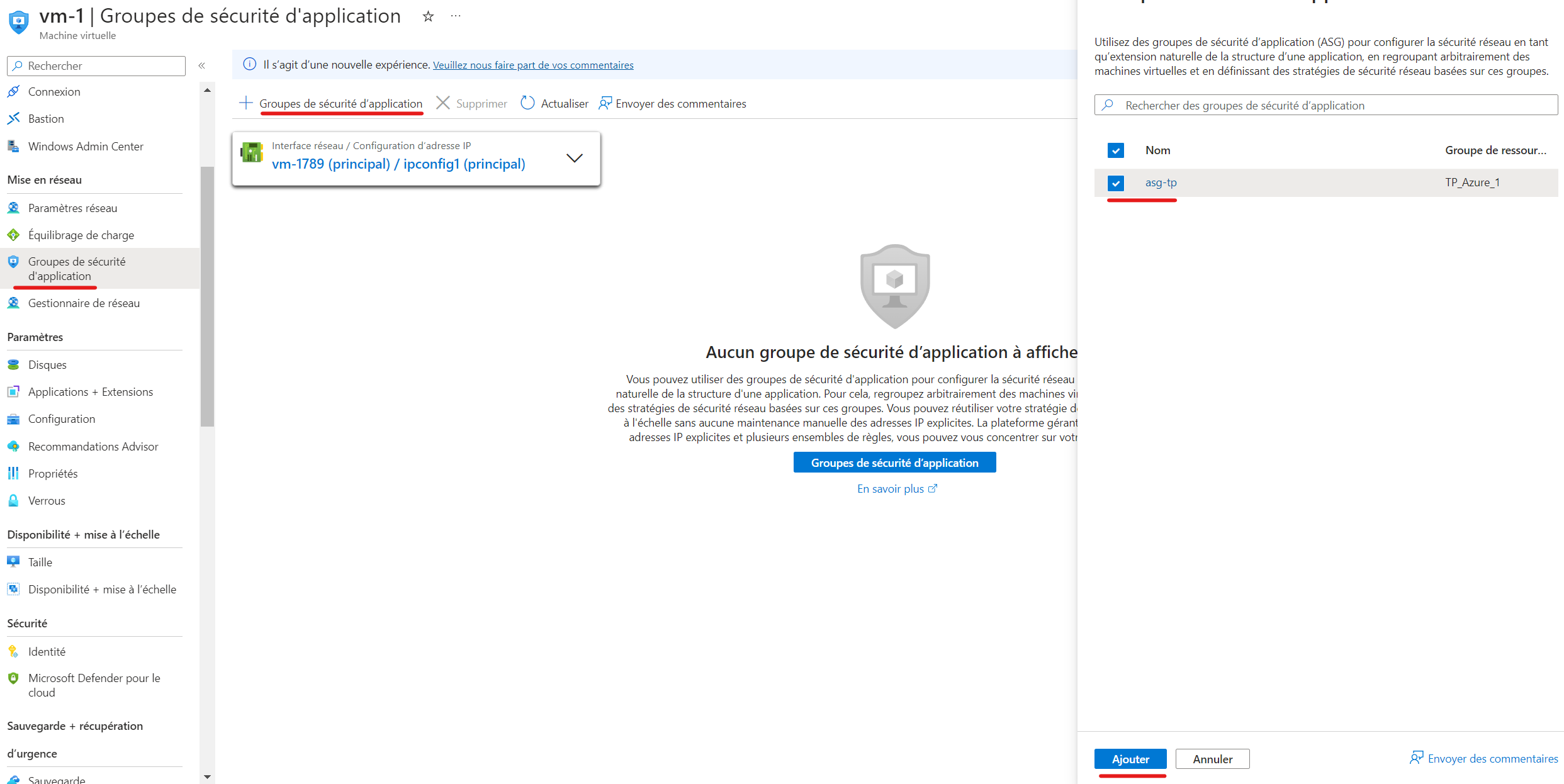 - Cliquer sur "+ Groupes de sécurité d'application"
