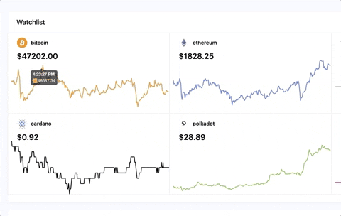 Upon login, users are greeted with charts depicting the performance of the top 6 cryptocurrencies.