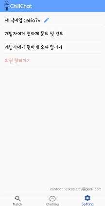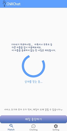 ChillChat 칠챗(ChillChat) - 대학생 랜덤채팅, 👉🏻👉🏻Playstore Link Firebase Authentication Firebase Realtime Database Firebase Cloud Storage Glide MVP pattern Preview