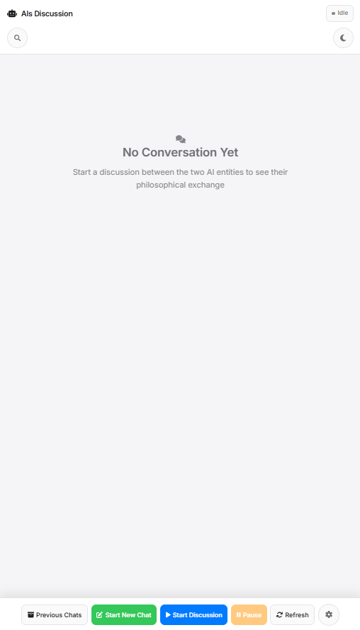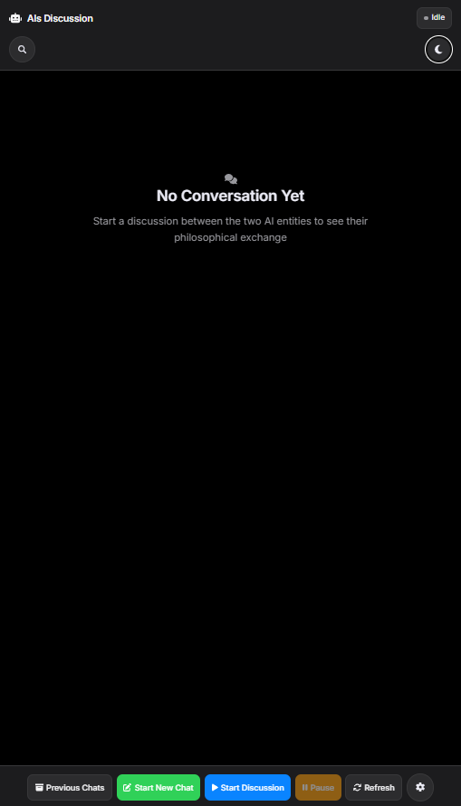 An interactive platform that orchestrates conversations between two AI models powered by Ollama. Watch AI models discuss, debate, and explore topics autonomously while you maintain full control over their behavior, personality, and constraints through customizable system prompts and model parameters.