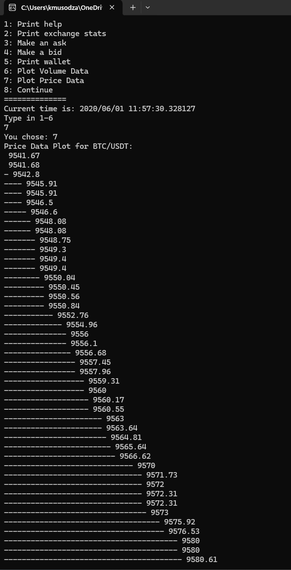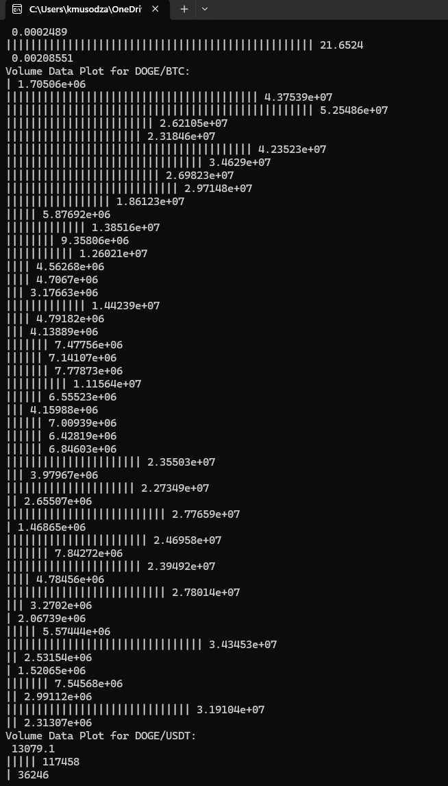4. Text-Based Plots: The system offers text-based plots for visualizing trading data. This includes plotting volume data and price data using appropriate characters to represent data points.