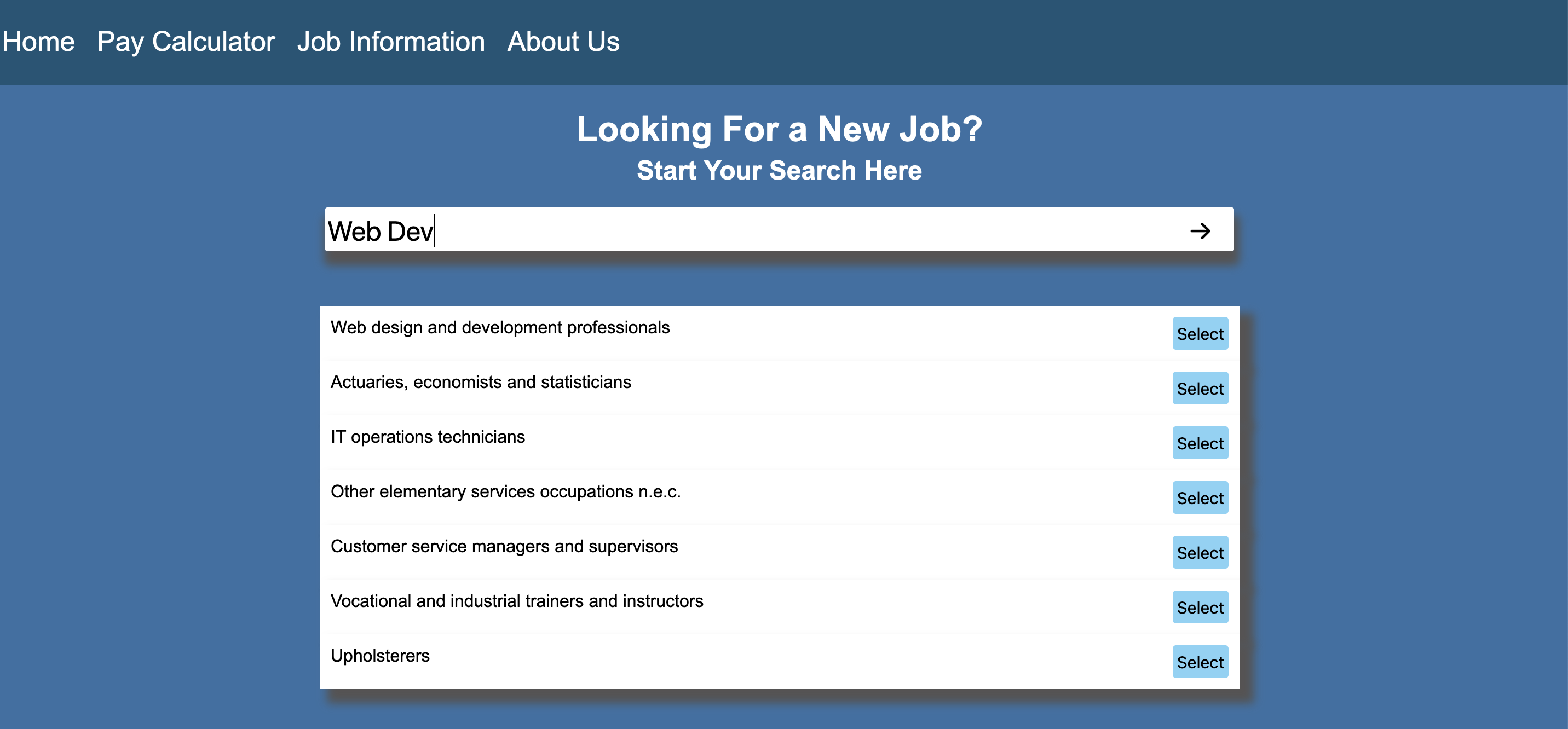 Job Search Web Application created using React and JavaScript.