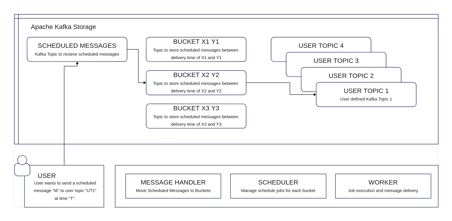 Scheduled Message delivery implementation in Apache Kafka using micro services. The scheduled messages are grouped in Apache Kafka's storage based on their scheduled time of delivery.