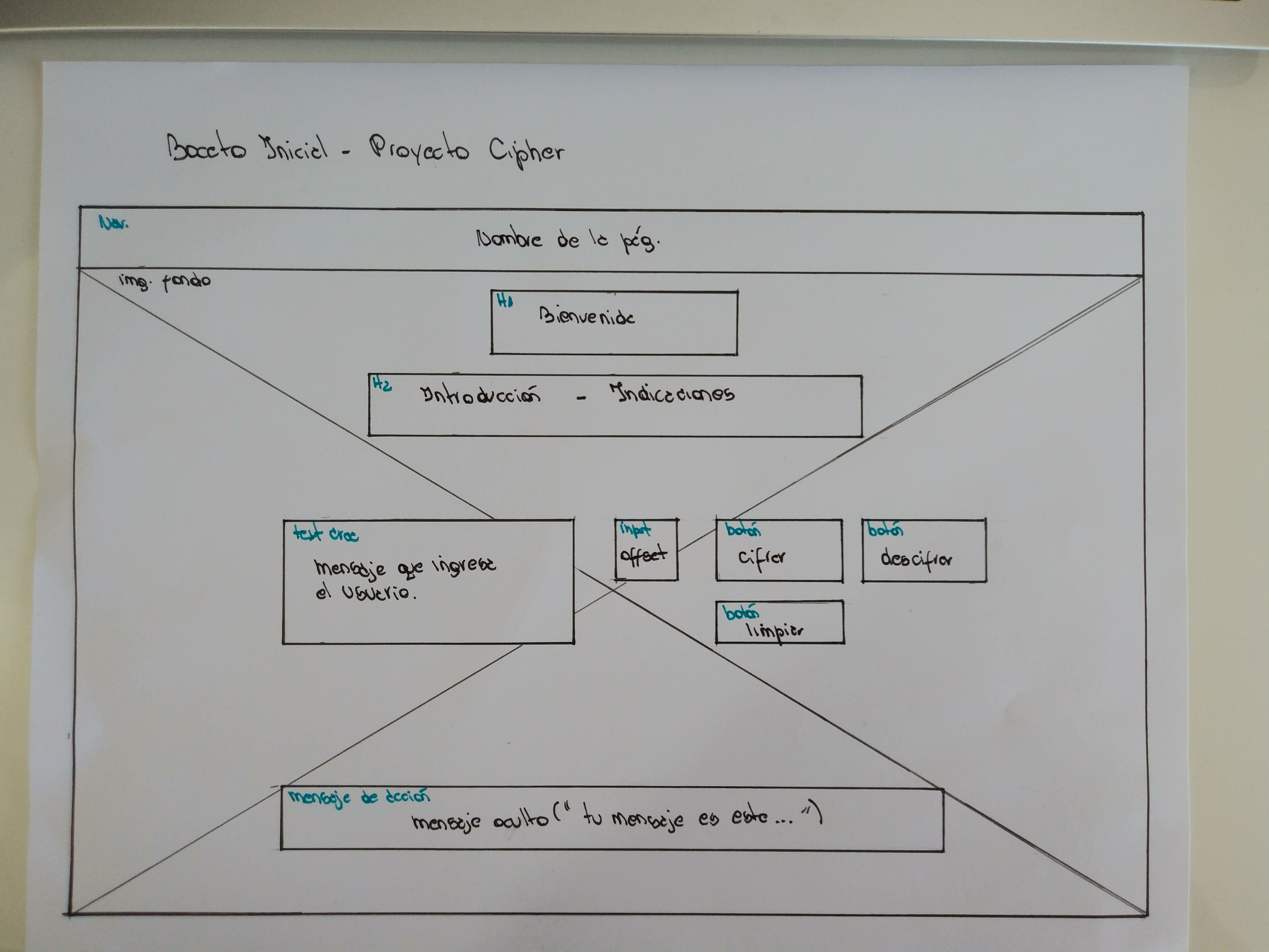 src/index.js: acá debes escuchar eventos del DOM, invocarcipher.encode()ocipher.decode()según sea necesario y actualizar el resultado en la UI.test/cipher.spec.js: este archivo contiene algunos tests de ejemplo y acá tendrás que implementar los tests paracipher.encode()ycipher.decode().