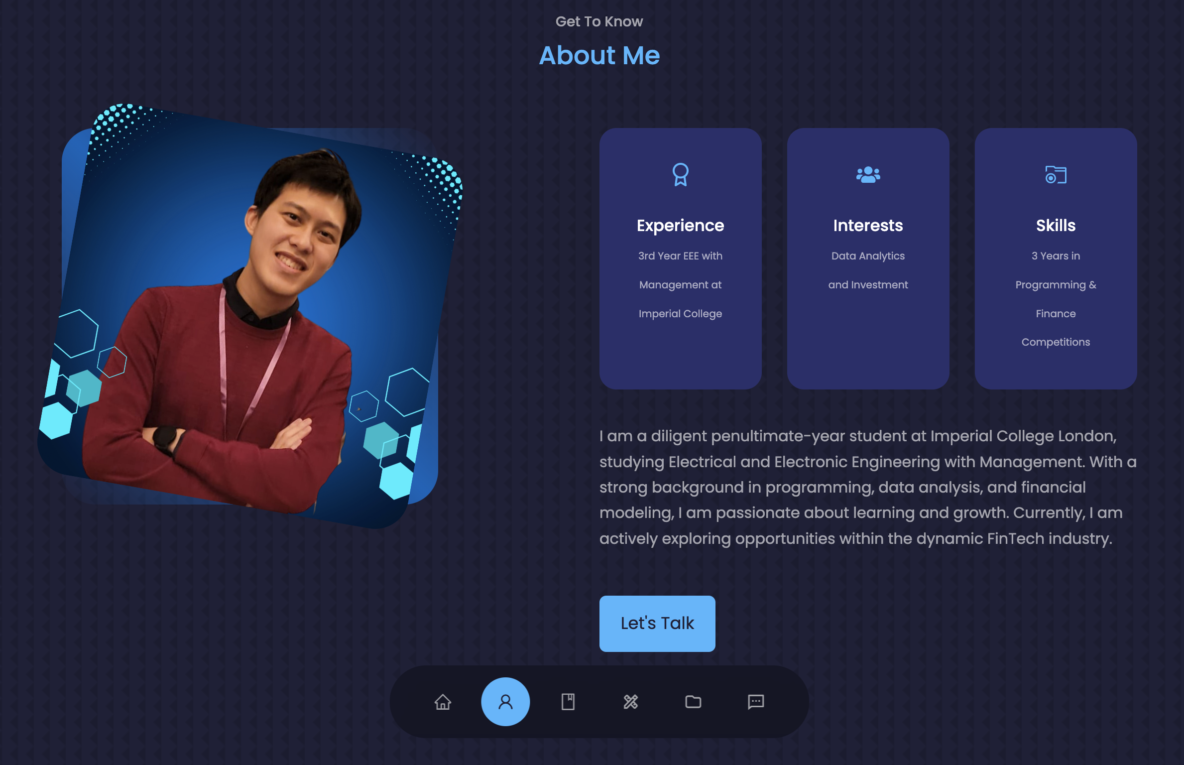 - Showcases skills, work experience, and projects